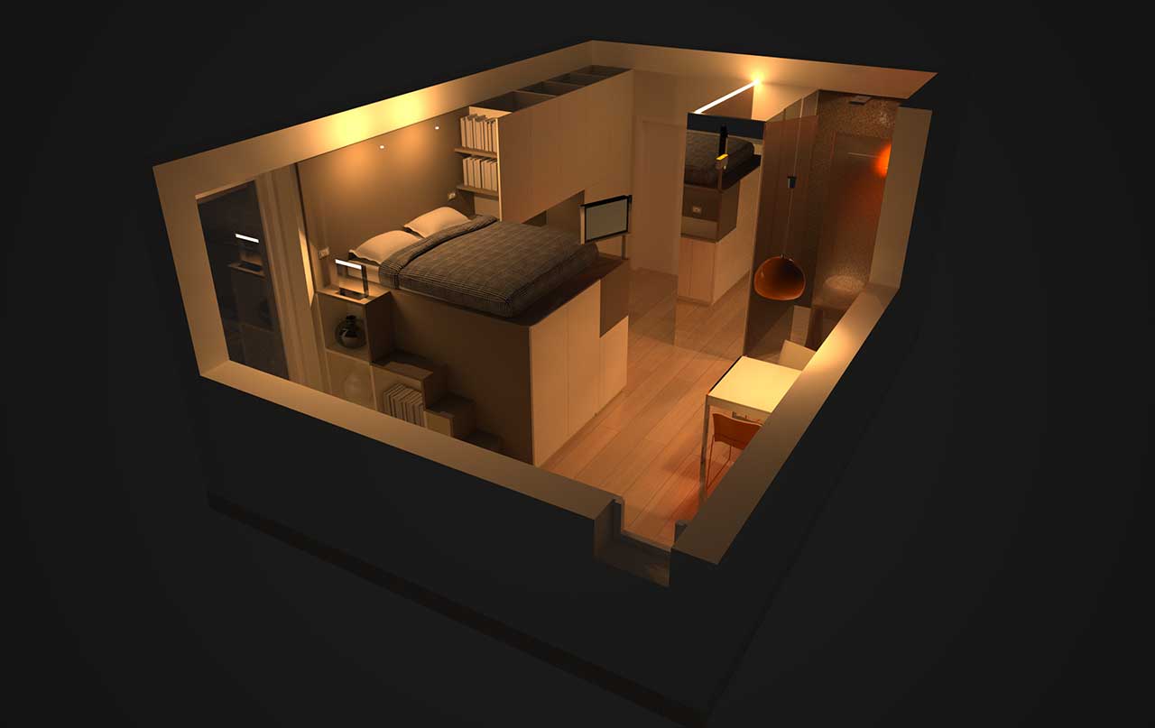 micro alloggi di 26 mq all’interno di una torre residenziale e direzionale progettata da mario botta